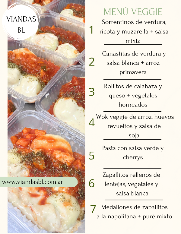 Las viandas se entregan congeladas, en bandejas aptas freezer y microondas. Duran hasta 2 meses a partir de su fecha de elaboración.