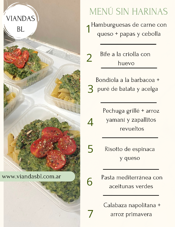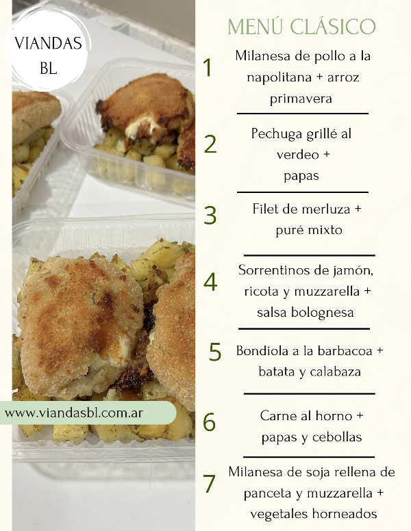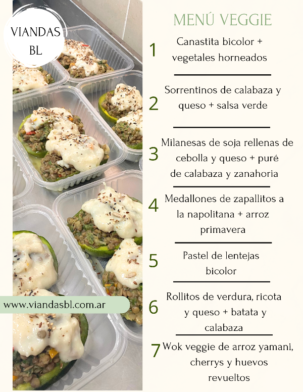 Las viandas se entregan congeladas, en bandejas aptas freezer y microondas. Duran hasta 2 meses a partir de su fecha de elaboración.