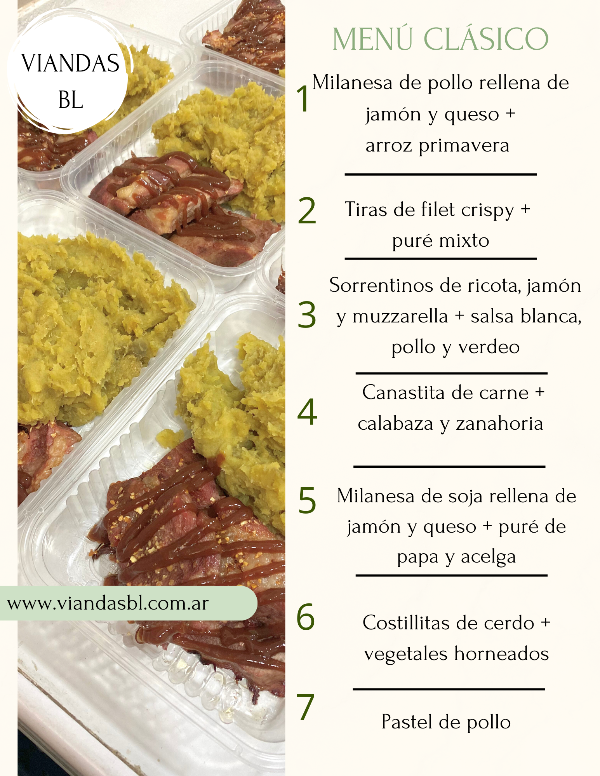 Las viandas se entregan congeladas, en bandejas aptas freezer y microondas. Duran hasta 2 meses a partir de su fecha de elaboración.